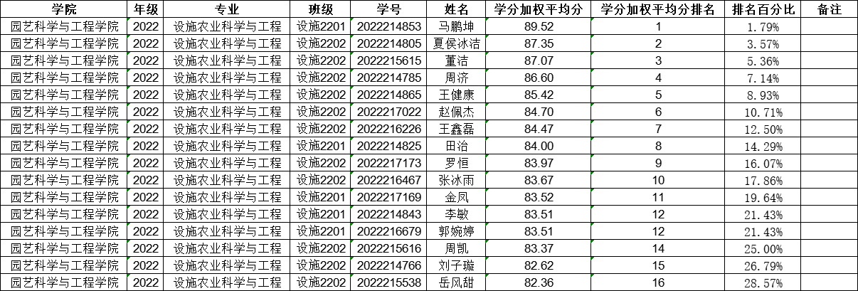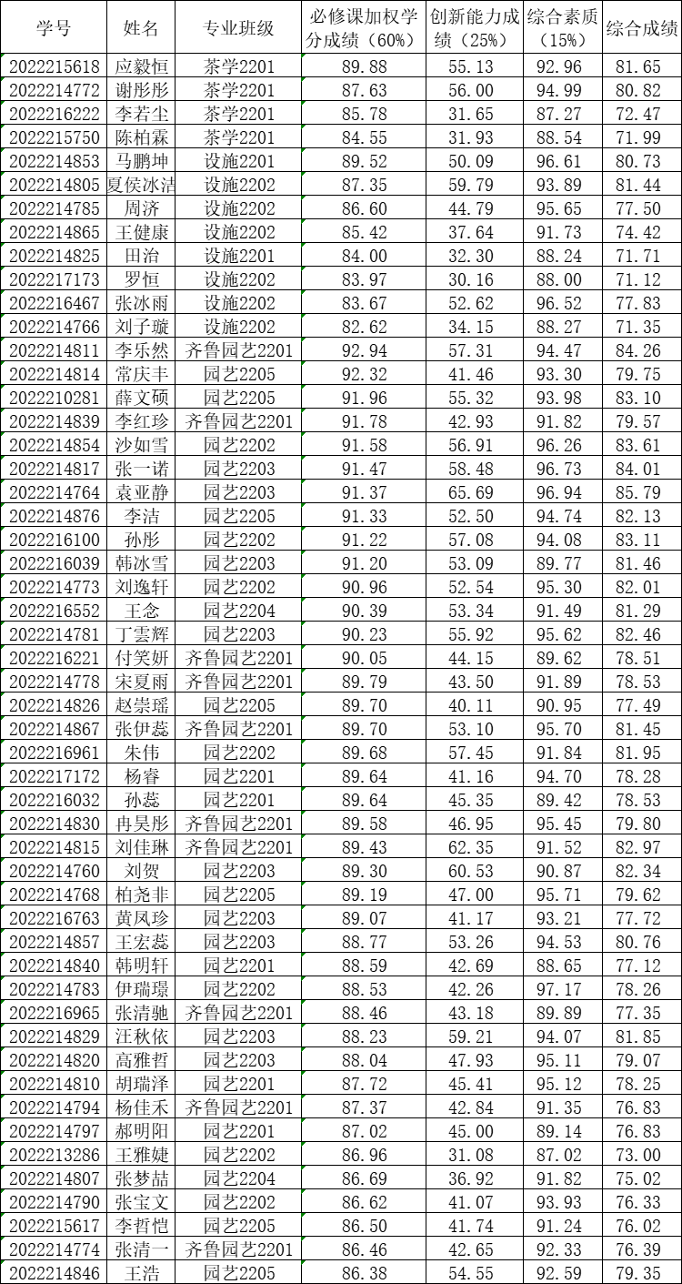 八、园艺学院2026年推荐优秀应届本科毕业生免试攻读研究生综合成绩公示