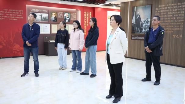 进入在“真理的力量”展厅和马克思书屋,大家不自觉的被一排排经典著作吸引,从《共产党宣言》、《资本论》到《毛泽东选集》、《邓小平文选》,再到《习近平谈治国理政》,所藏书籍系统、全面地展示了马克思主义理论体系的发展脉络及中国化时代化的马克思主义成果。“这些理论书籍是党和人类发展的一座宏伟思想宝库,也是我们开展思政课程的源泉与基础。只有不断地学习、不断的地温故、知新,才能有取得长足进步。!”党支部书记王超动情的说。
